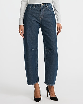 Mid Rise Medium Wash Barrel Jeans