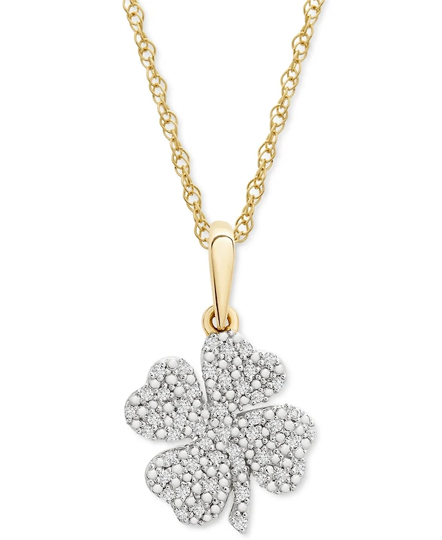 Wrapped Diamond Clover 18" Pendant Necklace (1/10 ct. t.w.) in 10k Gold, Created for Macy's