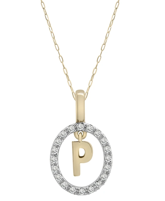 Wrapped Diamond Initial "P" 18" Pendant Necklace (1/10 ct. t.w.) in 14k Gold, Created for Macy's
