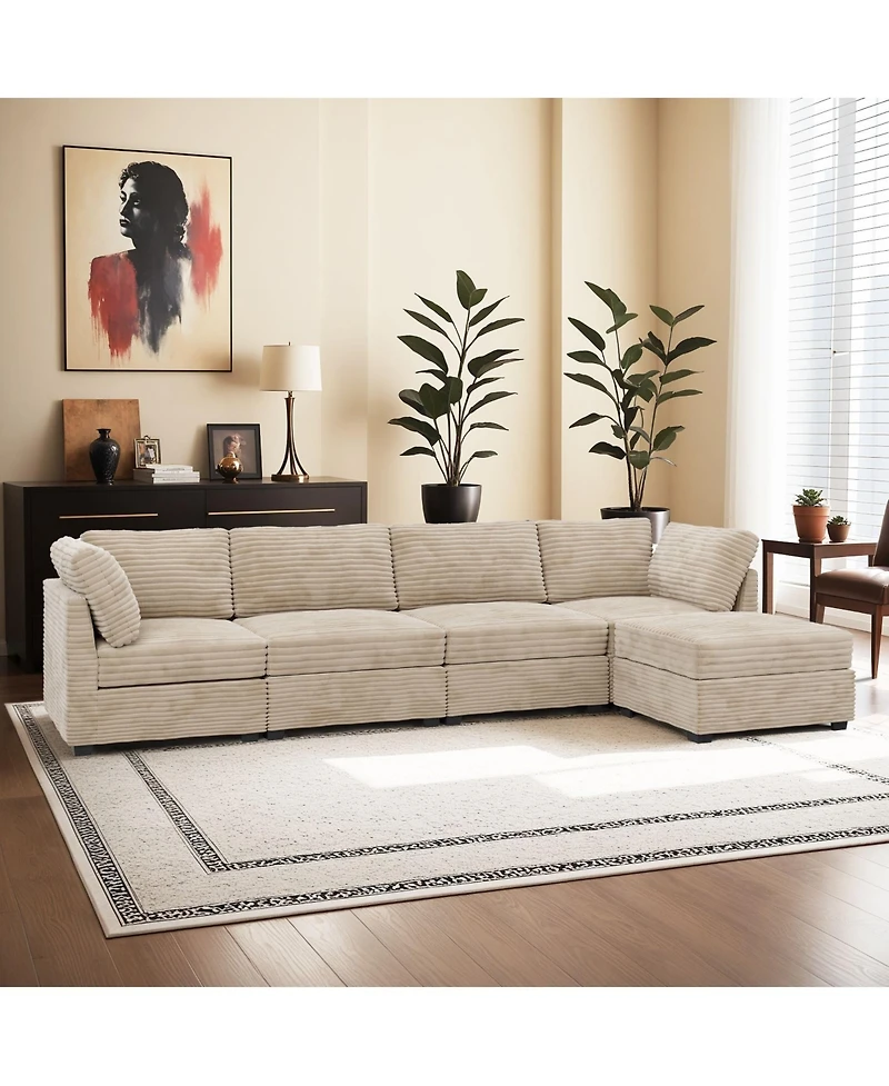 Xizzi 98'' Modular Sectional Sofa Couch, 5-Piece Comfy Corduroy Fabric Couch for Living Room, Modern L-Shaped Deep Seat with Chaise Ottoman in Bloomington, MN