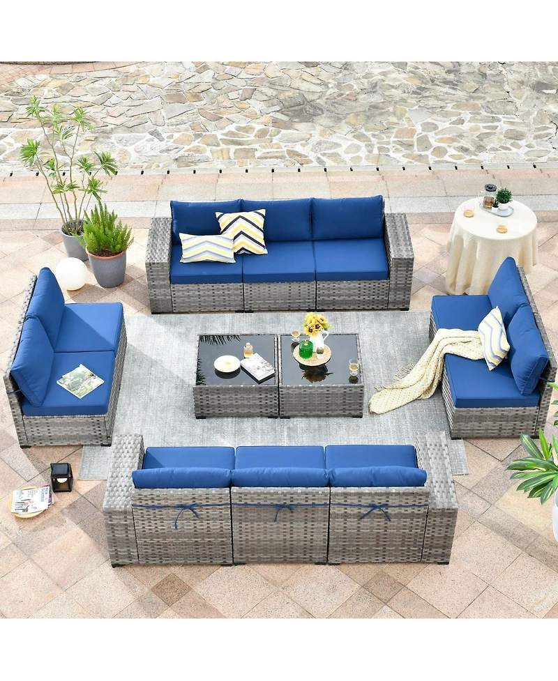 Xizzi Patio Furniture Set,12 Pieces Outdoor Sectional Sofa Couch Set,Patio Conversation Set with Modular Wicker Deep Seat Chairs,Comfy Cushions,Side T