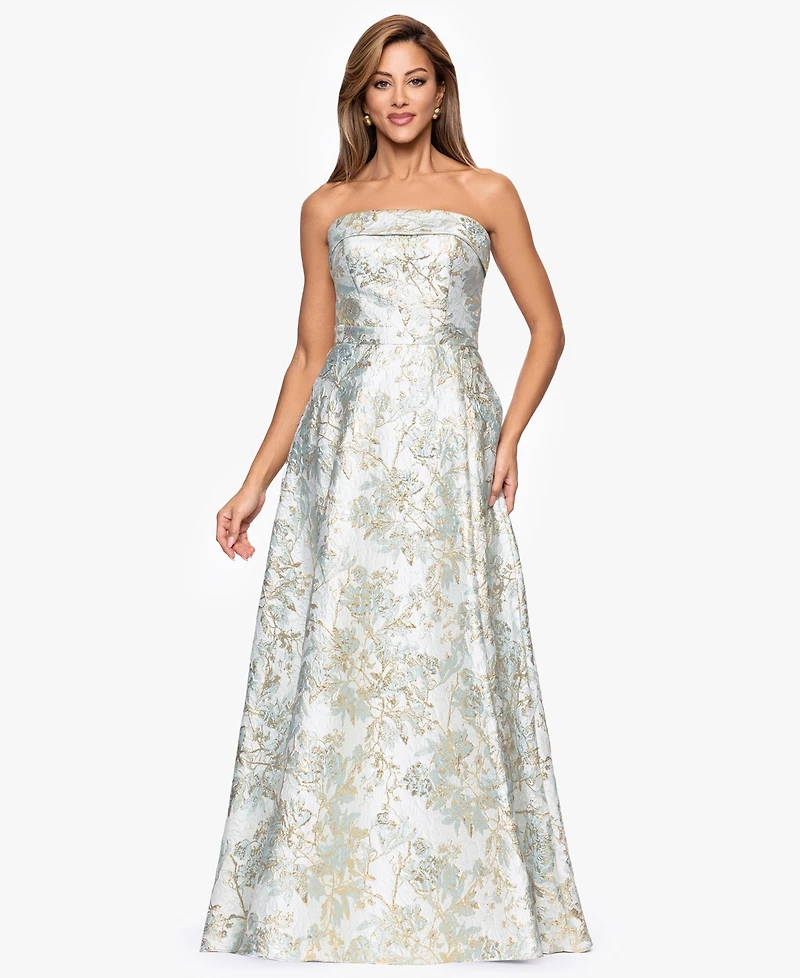 Xscape Women's Long Strapless Brocade Dress in Bloomington, MN