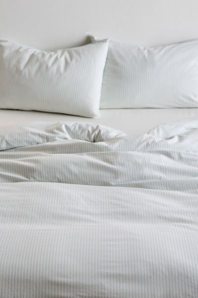Add a timeless layer to your bed with this lightweight cotton duvet cover. This striped duvet cover feature allover striped detailing with ties at the side. Pair this duvet cover with our Yarn Dye Striped Knotted Sham Set for a coordinated look we love. Available exclusively at Urban Outfitters.