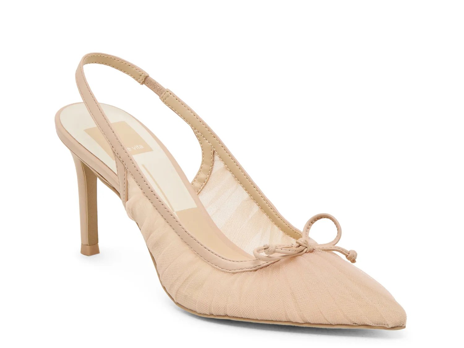 Sweet and sophisticated, the Yela pumps from Dolce Vita will add a feminine flair to your favorite formal looks. This elegant slingback features a sleek pointed toe, a tulle upper, and a dainty bow detail that ties your look together.