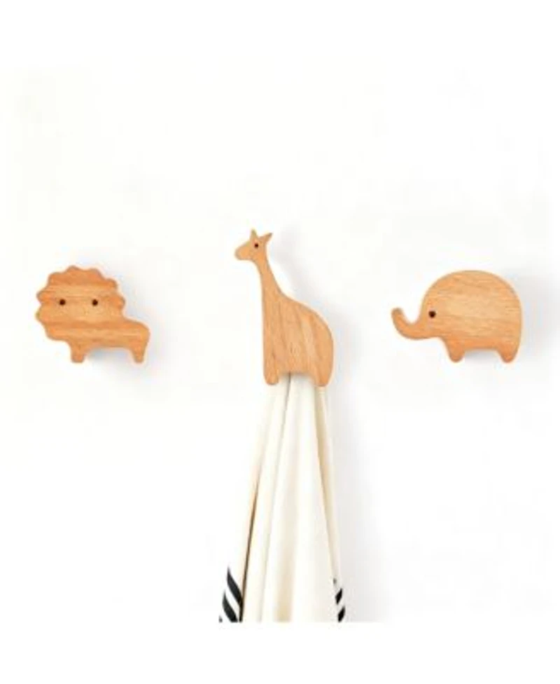 Cartoon wooden hooks, set of 4 playful animal shapes: elephant, lion, giraffe, hippo. Solid beech, smooth finish, strong grain.Clean look works in entry, living room, bedroom, bath, kitchen, office, closet or door blends with any style from rustic to modern. Two install options: expansion screws for extra strength, or no-trace stickers to protect walls. weight: 0.44 pounds. Length: 6.02 inch. Width: 4.02 inch. Height: 1.73 inch.