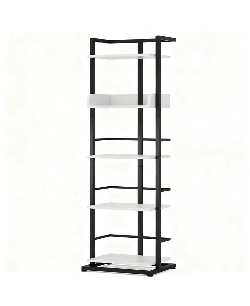 Yigii 5 Tier Narrow Wood Bookcase Metal Edge Industrial Corner Storage Shelf