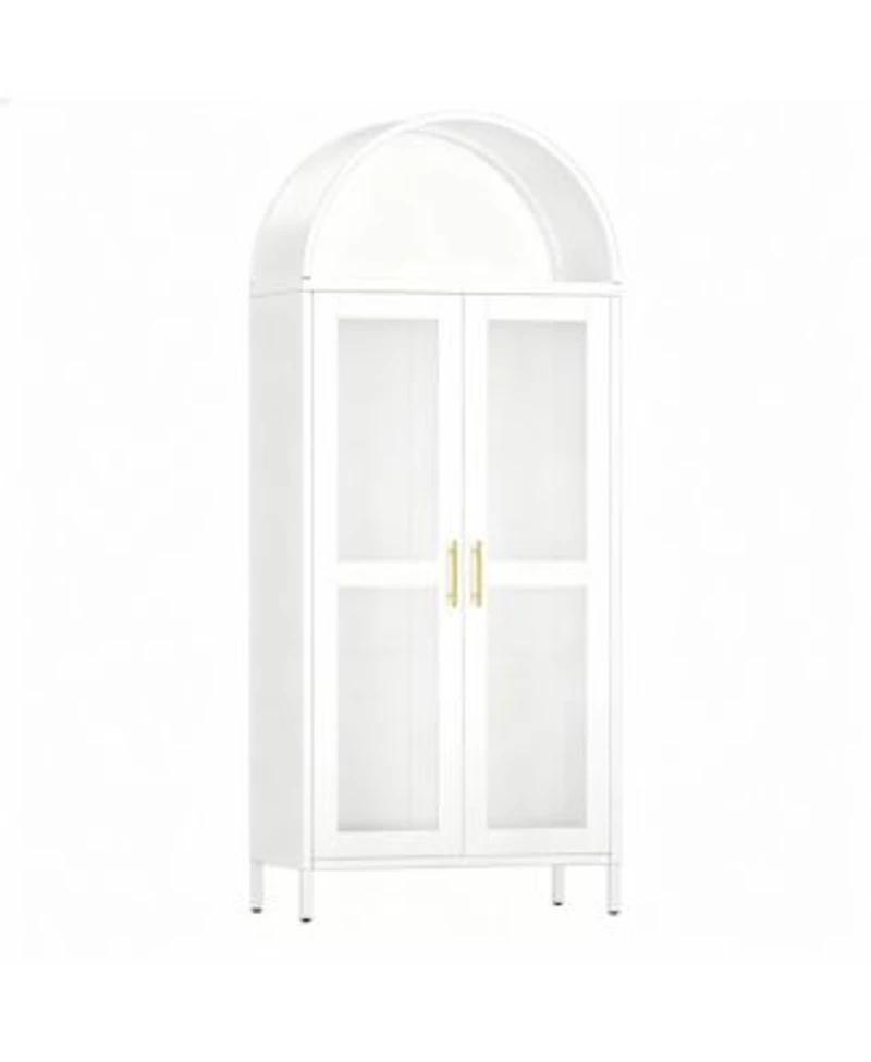 Arched glass-door cabinet gives any room an instant lift use it for books, china or collectibles. Clear panels keep contents visible and dust-free. Light yet strong steel frame, smooth hinges, toughened glass, no odd smells. Four raised feet keep the base dry and make floor cleaning easy. All parts and pictured instructions are in the box for fast solo assembly.Weight: 0.06 pounds. Length: 15.35 inch. Width: 30.71 inch. Height: 72.83 inch.