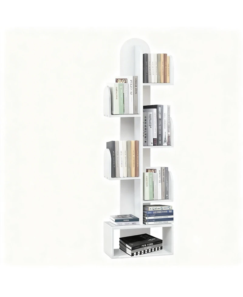 Add a playful touch to your space with this cactus-inspired bookshelf. Its fun tree-shaped design adds character to any living room, bedroom, or office. 5-tier Storage: Featuring 2 tiers on the left and 3 on the right, this bookshelf offers ample space to store and display books, plants, photos, and decorative items, making it a space-saver for any room. For added peace of mind, the bookshelf comes with anti-tip wall anchors, ensuring stability and preventing accidental tipping, especially important in homes with children or pets. The finish ensures it is safe for use in any indoor space, while also being durable enough for everyday use.Stylish and functional, it enhances any room while keeping things organized. Weight: 17.02 pounds. Length: 6.30 inch. Width: 15.00 inch. Height: 49.00 inch.