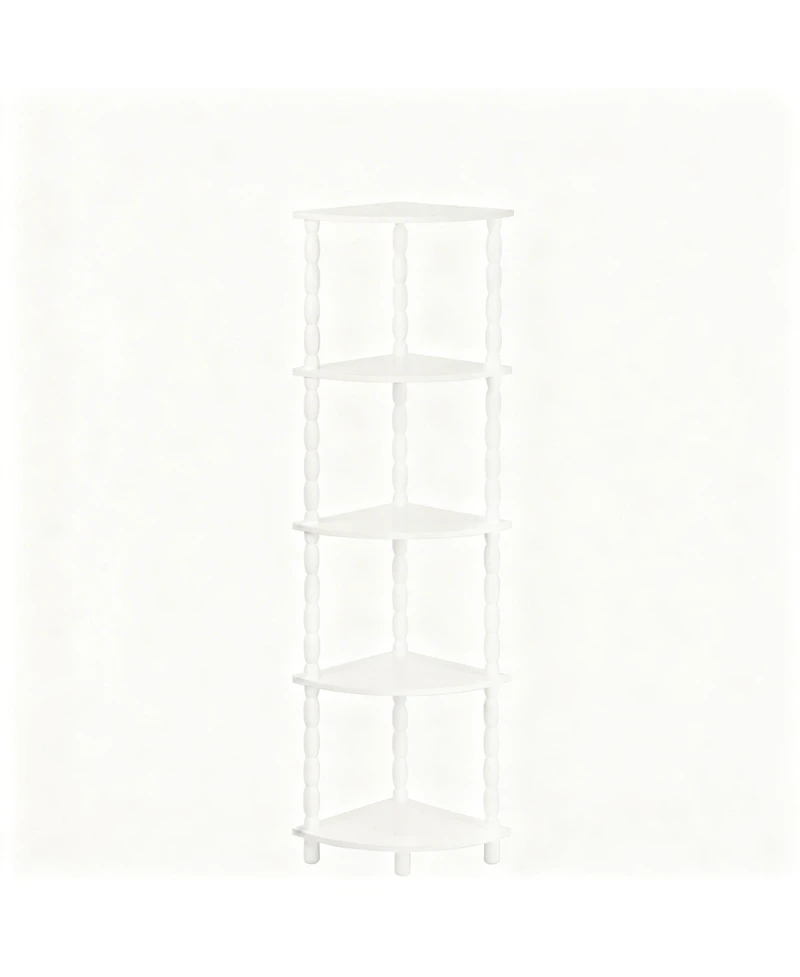 Maximize Your Space. By placing this shelf in a corner, you free up valuable wall and floor space, making your room feel more open and organized. Stylish Corner Bookshelf: Elevate your decor with this elegant corner shelf. It boasts spindle-style vintage and a warm wood finish that brings modern sophistication to any space. Whether in your living room, bedroom, or office, it seamlessly blends functionality with stunning visual appeal.Additionally, the rounded open design provides ample storage while helping to prevent accidental bumps. Hassle-Free Assembly: With its simple structure and detailed instructions, you can quickly assemble this corner shelf by following the instructions without any tools required.Weight: 0.01 pounds. Length: 11.80 inch. Width: 11.80 inch. Height: 51.80 inch.