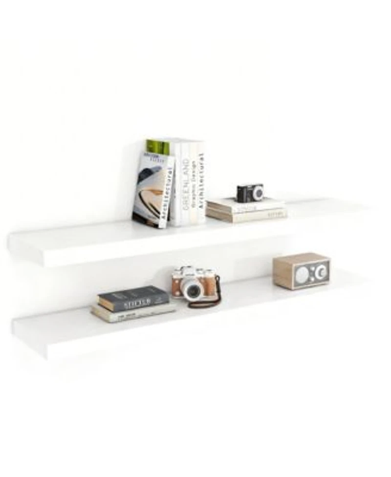 These shelves offer both decoration and practicality.The 2-piece set is cost-effective and practical. Shelves can be combined, staggered, or mounted side-by-side to provide extra storage in kitchens, bathrooms, and bedrooms.Maximizes space while taking up zero square feet. Enhances home decor in any room. Fill empty wall space above desks, fireplaces, entryways, or between windows. Easy To Assemble: These floating shelves come with stainless-steel invisible brackets and a fixing screw at the bottom to prevent sliding and damage for long-term use.Mount gap-free to any surface in less than 10 minutes. Multi-scene and Functional: Use in bathrooms for beauty and hair products. Mount in bedrooms for books and personal items. Use in kitchens for spices and jars. Display in living rooms for picture frames and collections. Use as bookshelf, over toilet shelf, kitchen shelf, or display shelf. Weight: 0.28 pounds. Length: 8.00 inch. Width: 48.00 inch. Height: 1.60 inch.