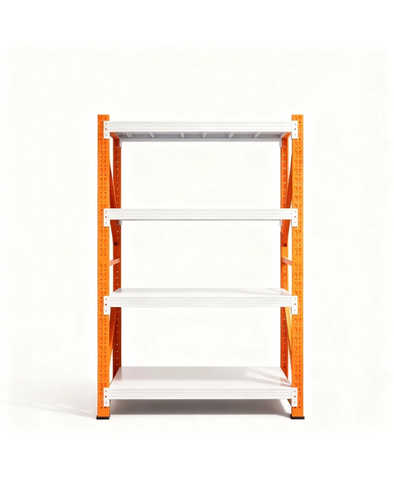 Made of high-quality thickened cold-rolled steel with anti-rust coating, holds up to 3000 pounds. Multipurpose Garage Storage Shelving Units. Size suitable for garage, pantry, closet, basement, office, kitchen, supermarket, warehouse. The 4 tier metal shelves expand storage space, making home or commercial space clean and orderly. Durable and Sturdy. Reinforced stable side beams evenly distribute weight, upright columns securely fastened with high-quality screws for solid connection. Adjustable Garage Storage Shelving Unit. Customize your own space with adjustable connectors. Height of each layer adjustable by moving crossbar up or down to meet different heights of varied objects. Easy Assembly and Quick Response. 4-Tier garage storage shelves come with screwdriver, gloves and detailed user manual for fast assembly.Weight: 4.85 pounds. Length: 19.60 inch. Width: 41.30 inch. Height: 78.70 inch.