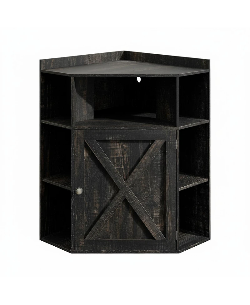 This 3-tier corner cabinet with a charging station features 2 Usb ports and 2 outlets for devices like iPads, phones, and table lamps, adding daily convenience. It offers a large open top shelf, 6 cubbies, and three angled shelves—two with doors for private storage, plus adjustable internal compartments to meet various storage needs. Ideal for displaying and organizing books, toys, photo albums, crafts, and daily supplies, it brings tidy, convenient storage to bedrooms, living rooms, studies, playrooms, bathrooms, and offices, fitting well in home and office corners. All necessary hardware and tools are included, with labeled parts for easy 40-minute assembly. Its frame is made of Fsc-certified wood, and the customer service team responds to any issues within 24 hours. Available colors: Amber Pine, Dark Brown, Dark Rustic Oak, Rustic Grey
