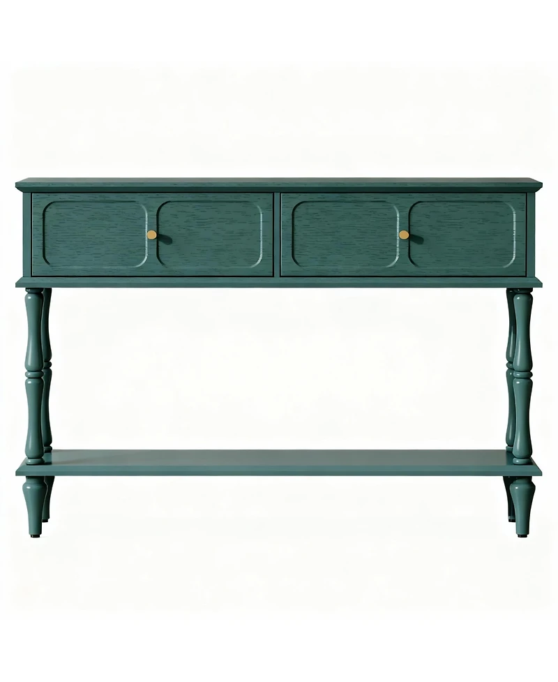 Yigii Mid-Century Green Console Table, 2 Drawers, Open Shelf, Vintage Design