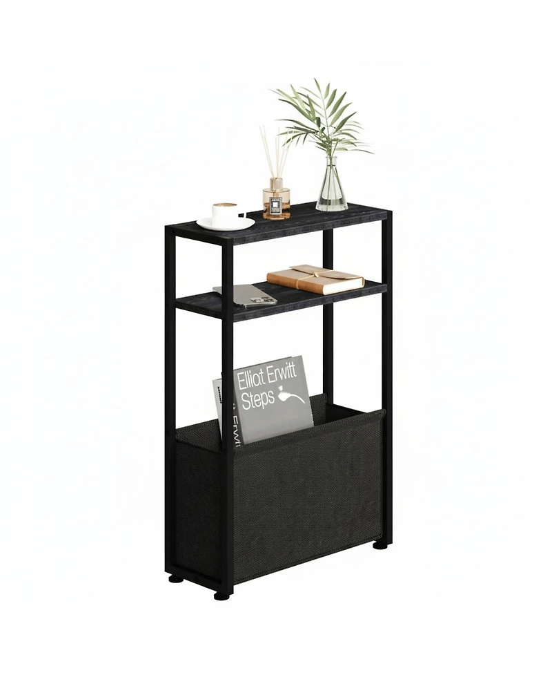 Yigii Narrow Side Table Slim End With Fabric Basket Compact Storage Sturdy Adjustable Feet Easy Assemble