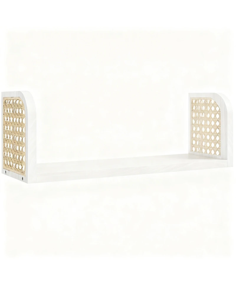 Yigii Rattan Wall Shelf Wooden Floating Storage Boho Decorative