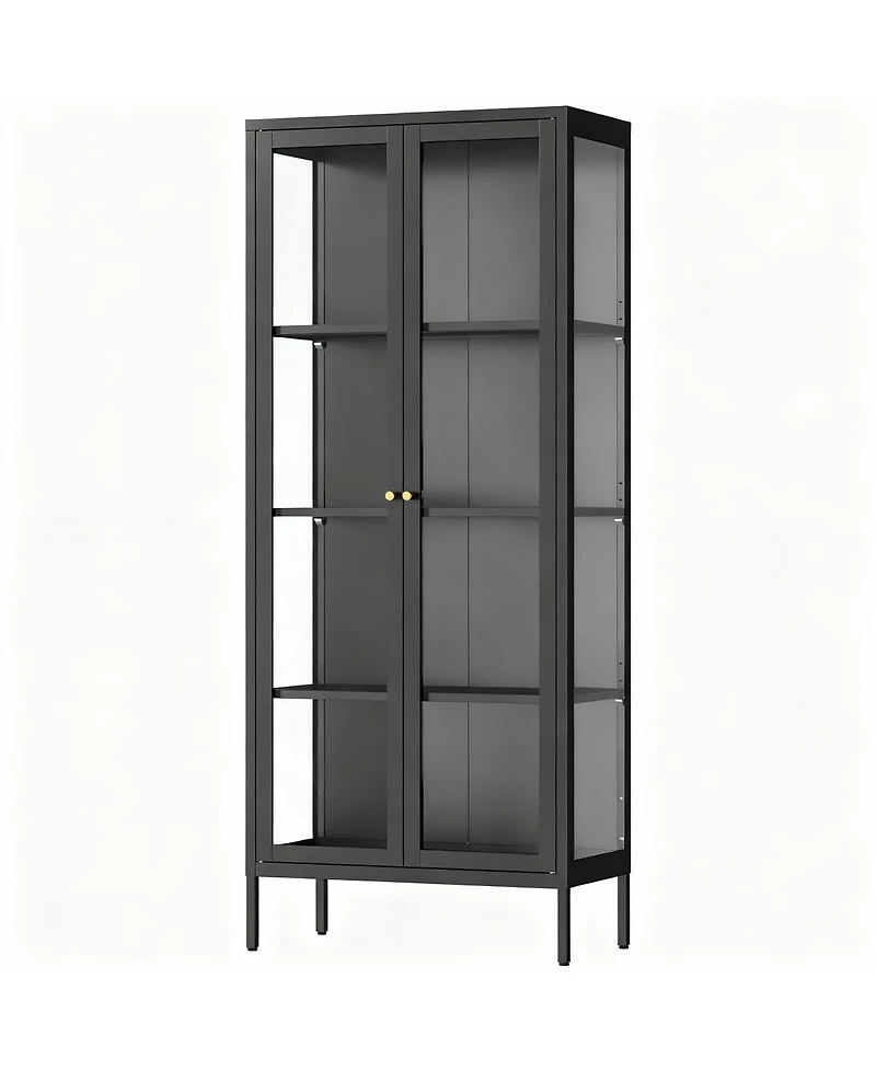 Three-sided visibility puts every detail of collectibles, crafts, figures or bags in full sight. The thickened steel frame holds up to 180 lb without wobble. A quick wipe keeps glass and metal looking new, and the powder-coated panels resist moisture and pests. Assembly is simple with the included guide and video two people and a power drill make it faster. Weight: 0.08 pounds. Length: 14.00 inch. Width: 28.00 inch. Height: 66.00 inch.