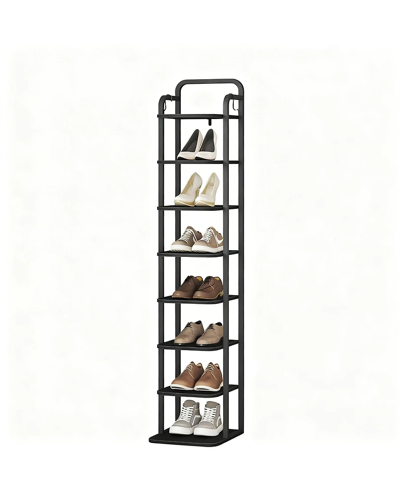 Yigii Vertical Shoe Rack Narrow Tower Adjustable Shelves 2 Hooks