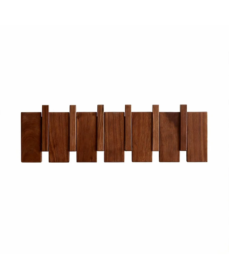 Handmade from solid beech and pine, this wall-mounted coat rack pairs strength with a smooth piano-key silhouette six flip-down hooks vanish when not in use, saving space in entryways, kitchens or offices. A soft wax-oil finish protects garments and fingers alike, while the included hardware makes installation on any wall a two-minute task. Weight: 0.57 pounds. Length: 17.72 inch. Width: 1.38 inch. Height: 5.31 inch.