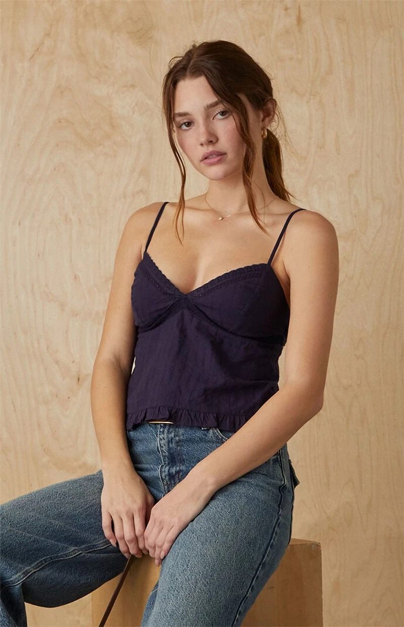 The Embroidered Tie Back Babydoll Top from Your Favorite is a breezy essential with a delicate touch. Made from woven fabric with a tonal striped print, it features a flattering V-neckline, embroidered trimming, adjustable straps, and a ruffled hem. The back tie detail and button-down closure add an effortless, feminine finish to this flowy silhouette.