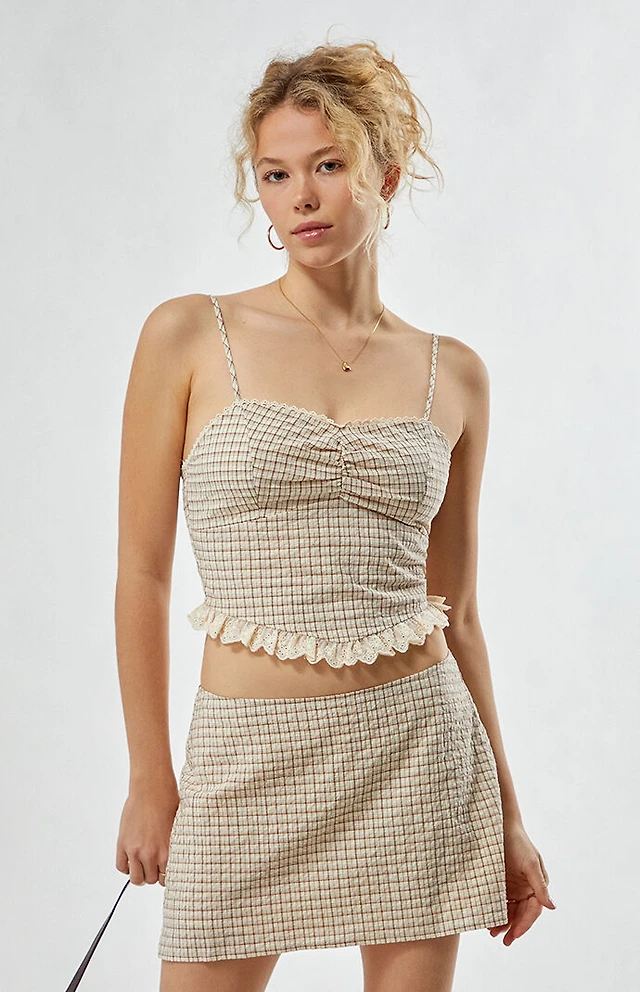 Your Favorite Georgia Plaid Lace Trim Tank Top
