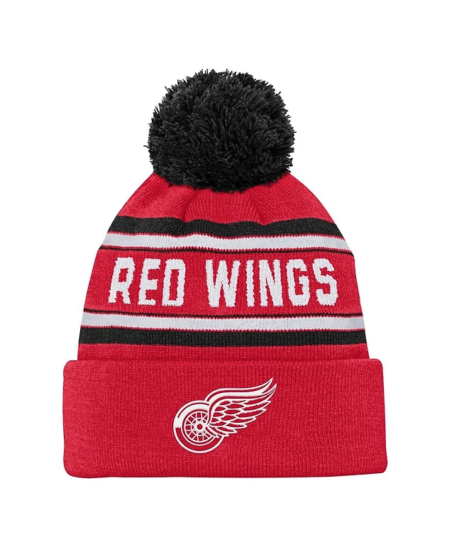 Youth Boys and Girls Detroit Red Wings Red Jacquard Cuffed Knit Hat with Pom