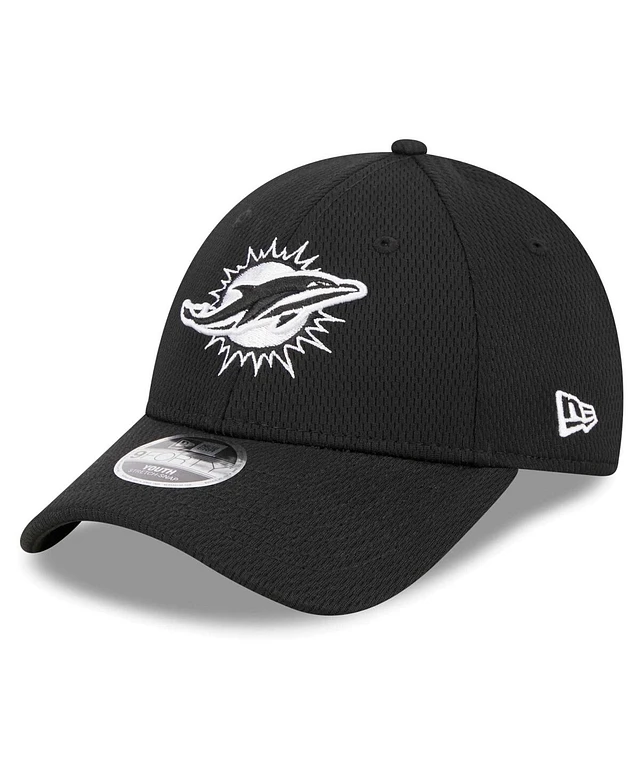 Youth Boys and Girls New Era Black Miami Dolphins Main B-Dub 9FORTY Adjustable Hat