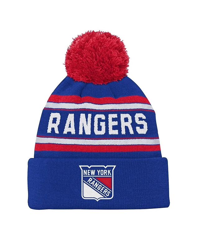 Youth Boys and Girls New York Rangers Blue Jacquard Cuffed Knit Hat with Pom