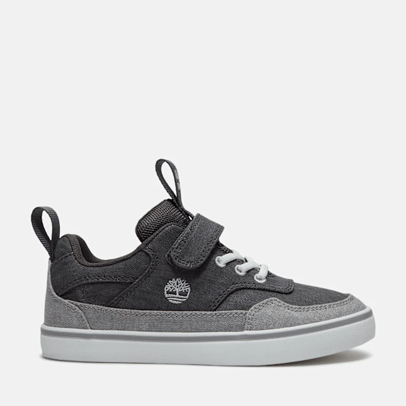 For growing feet that go on big adventures. The Stone Jump Hook-and-Loop Sneaker is made with Premium Timberland® leather and a ReBOTL™ fabric lining containing at least 50% recycled PET plastic. The OrthoLite® footbed helps keep feet cushioned, while the rubber lug outsole helps provide traction. Plus, the "Does it Fit?" sockliner helps you know when it's time for a bigger pair.