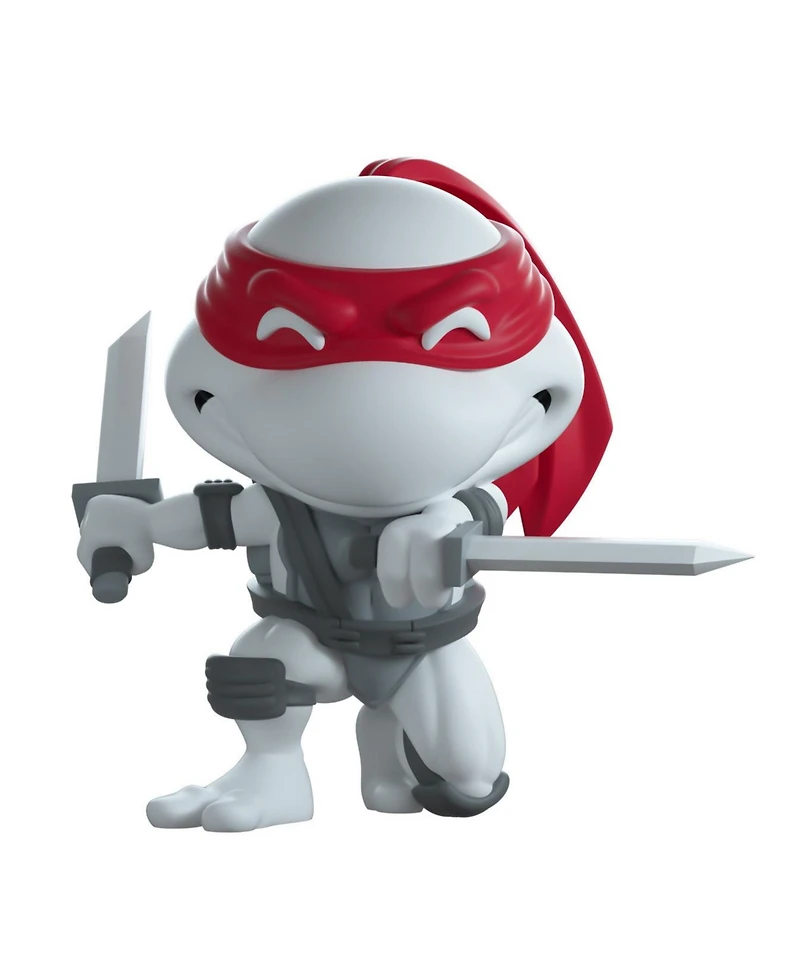 Leonardo returns to Youtooz but this time in a stunning black and grey palette with a vibrant contrast of color coming from the red mask tied around his head.a Shopville Exclusive! They have arrived and are ready to be shipped! Purchase the Tmnt 4-pack for an exclusive $10 off Youtooz coupon, good for a future purchase at Shopville. Quantities are extremely limited so act fast and be sure to reserve yours!The Collectible“No guts, no glory!” Standing at 4.2 inches tall his face stretches into a menacing smile with clenched teeth as he s in the throes of battle, posed gripping his twin sai pointed forward and ready to attack! The thick strap around his waist is perfect for when he needs to sheath his weapons and matches the elbow and knee guards around his joints.The exterior of his packaging sees him standing atop a building surveying the stretching city and harbor underneath. The interior is the silhouette of a city skyline reflecting off the lake at its front while the protecti…