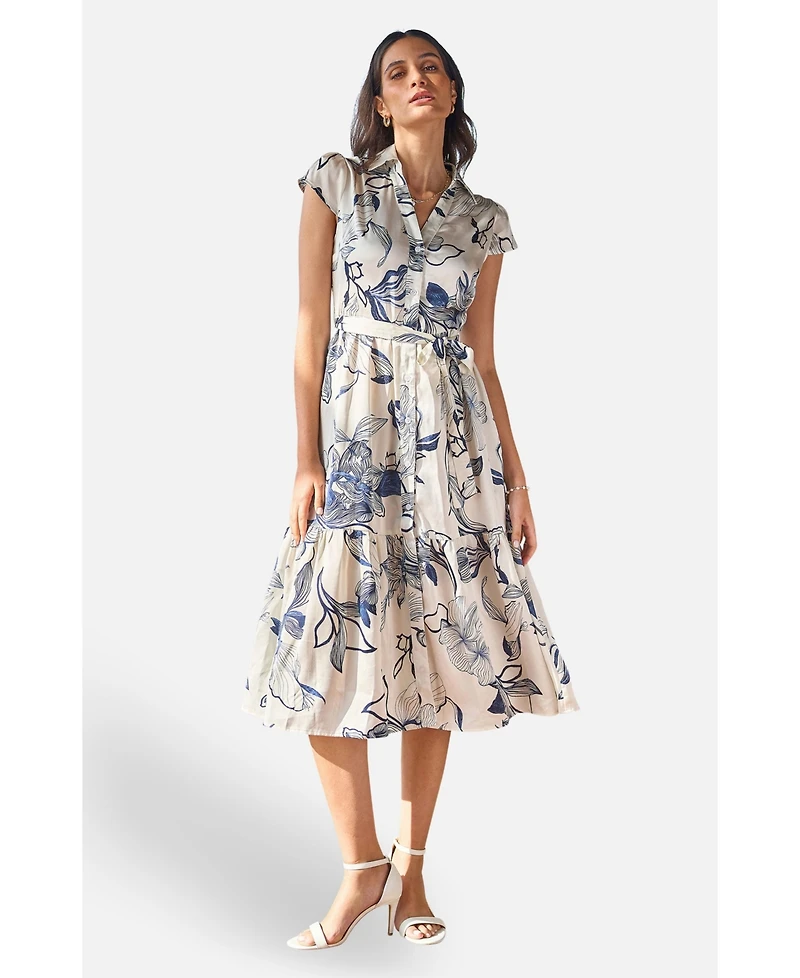 Yumi Women's Abstract Floral Midi Shirt Dress