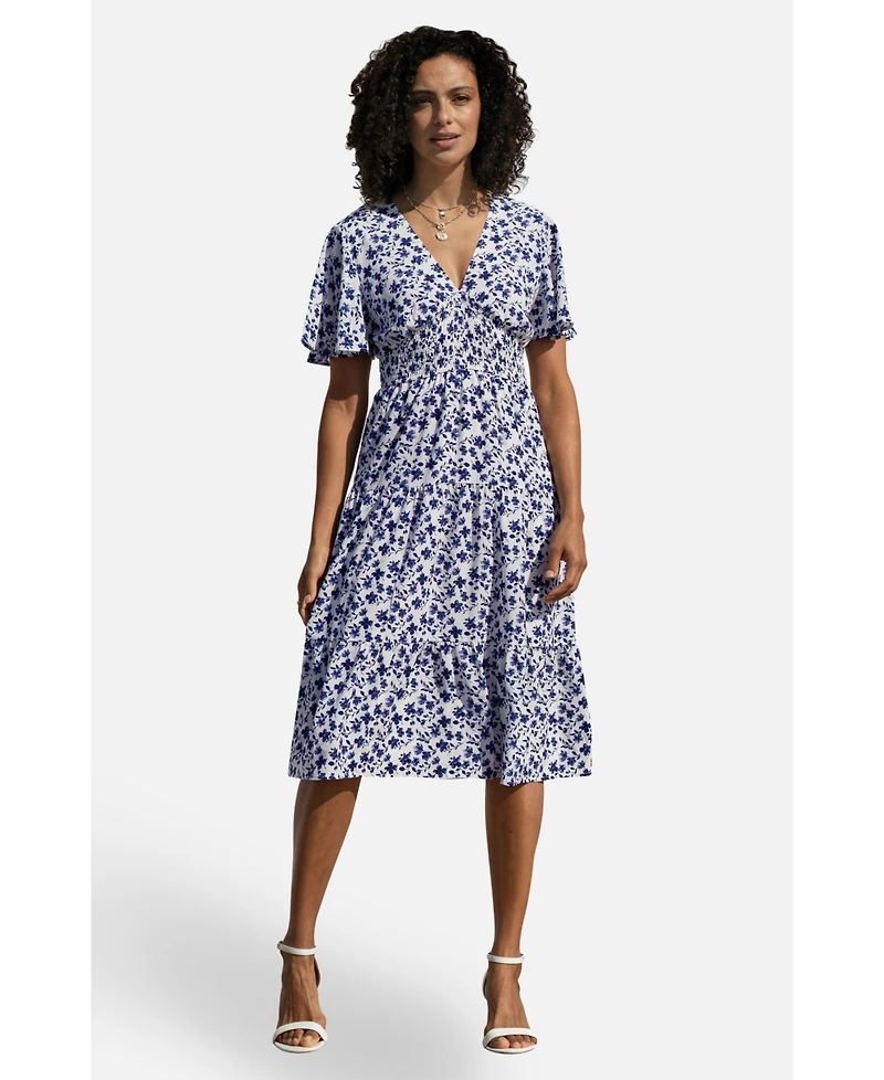Yumi Women's Floral Angel Sleeve Midi Dress
