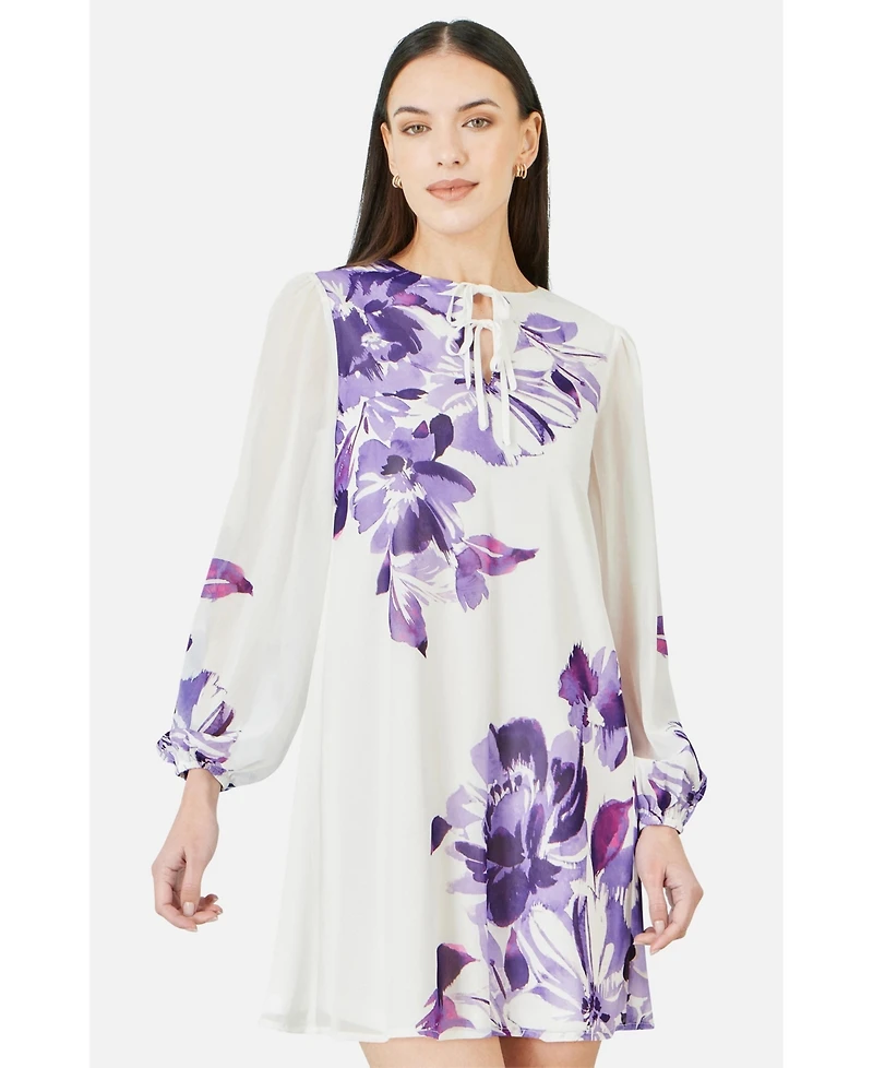 Yumi Women's Keyhole Neck Floral Tunic Dress