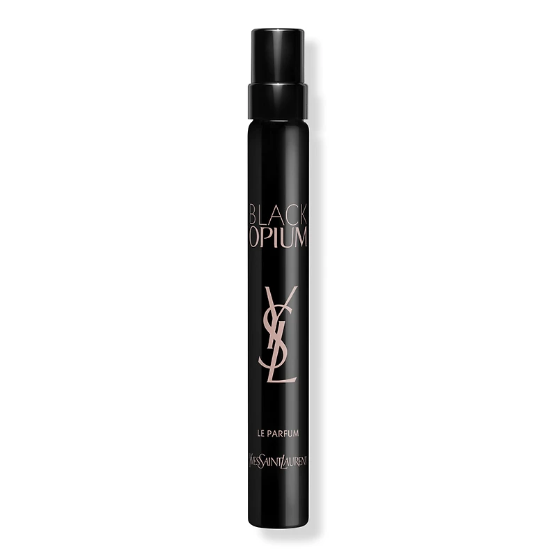 BLACK OPIUM LE PARFUM TRAVEL SPRAY 0.3OZ. Features: Black Opium Le Parfum women's fragrance is the most intense and warm interpretation of the original Eau de Parfum by Yves Saint Laurent.. This captivating vanilla perfume radiates an unexpected rush of four precious vanillas, twisting the emblematic signature YSL Perfume into something radical.. Rich vanilla is complemented by iconic coffee notes and a sensual bouquet of white flowers.. ABOUT THE BOTTLE: The iconic fragrance bottle glams it up for the night in a bottle as shiny as a couture black vinyl dress by Yves Saint Laurent. The glitter heart reminds us of thrilling city nights, creating a new symbol that is bold, wild, and powerful.. Fragrance Family: Warm & Spicy. Key Notes: Top - white floral bouquet. Middle - vanilla quartet. Base - coffee accord.