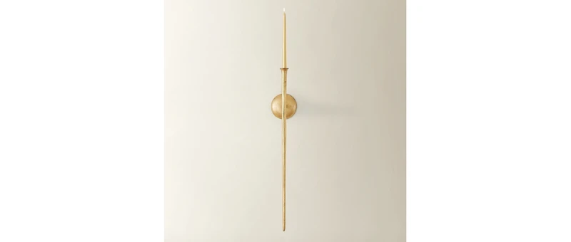 Elevate your interior with the refined elegance of the Aspar Wall Sconce, a statement piece designed to bring height and sophistication to any space. With its slender silhouette and impressive 33-inch height, this wall sconce creates a striking vertical accent that enhances both modern and classic interiors. Crafted for both style and function, it holds a standard taper candle, allowing you to create a warm, ambient glow perfect for intimate evenings or decorative displays. The clean lines and minimalist design make it stunning as a standalone piece or paired for a more dramatic effect. A convenient hook on the back ensures easy installation, while its sturdy construction provides reliable support. Whether placed in an entryway, living room, or dining area, this sconce adds timeless charm and a refined decorative touch.
