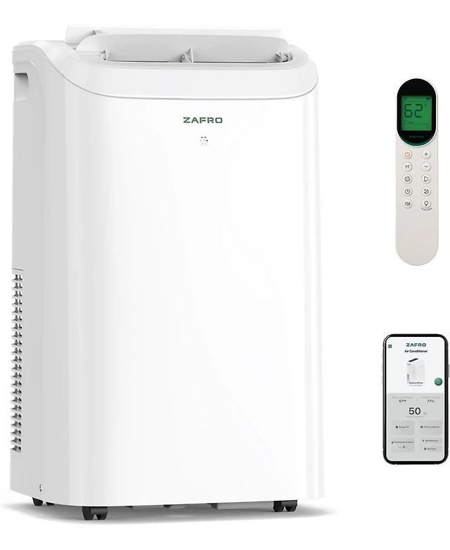 Zafro 12,000 Btu Portable Air Conditioner, Quiet 44dB, Fast Cooling, WiFi Control, Dehumidifier, Fan, 24H Timer, Easy Setup for Home/Office