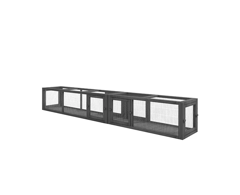 Zeus and Ruta Wooden Cat Play Tunnel is made of fir wood and metal wire, featuring a flexible design for separate use or combination into L/rectangle shapes. It has eight doors for multi-directional entry, seamlessly connects with windows, houses or cages, and supports up to 44 lbs. Suitable for cats under 10 lbs. Assembly required.