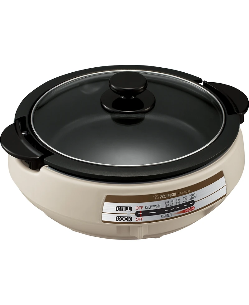 Culinary versatility elevates your kitchen experience with this Zojirushi gourmet d'Expert electric skillet, designed with a deep pan for sauteing, stewing, and grilling with ease. Adjustable temperature settings deliver precise control for consistent cooking results, while the ceramic nonstick surface ensures smooth food release and simplified cleaning. Stay-cool side handles enhance safe handling, and the magnetic power cord offers added convenience during use. Model number: Ep-PPC10HL.