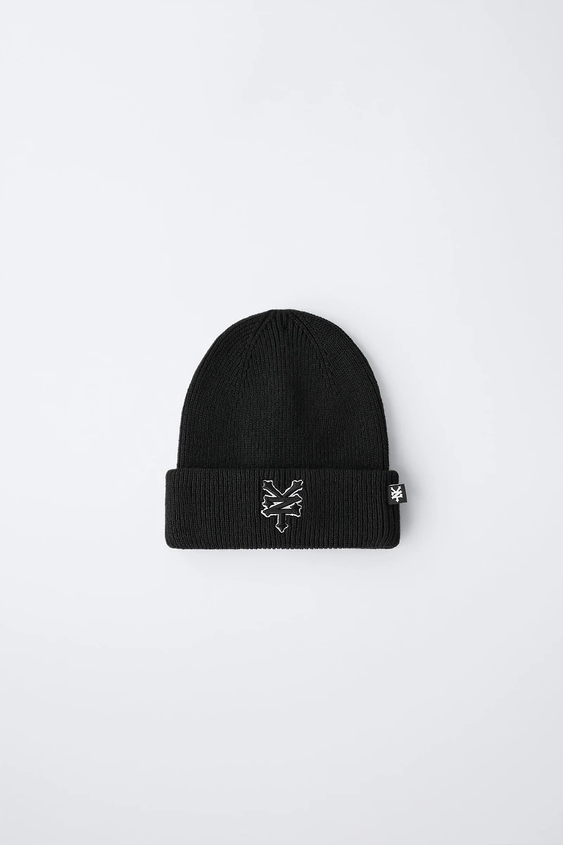 Knit hat with a cuffed hem. Features an embroidered ZOO YORK © X ZARA detail on the front and a label appliqué on the side.