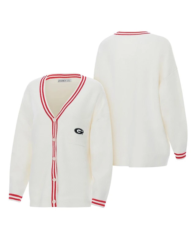 ZooZatz Women's Cream Georgia Bulldogs Striped Knit Button-Up Cardigan Sweater