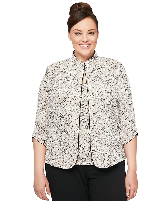 Alex Evenings Plus Printed Mandarin Jacket & Top Set