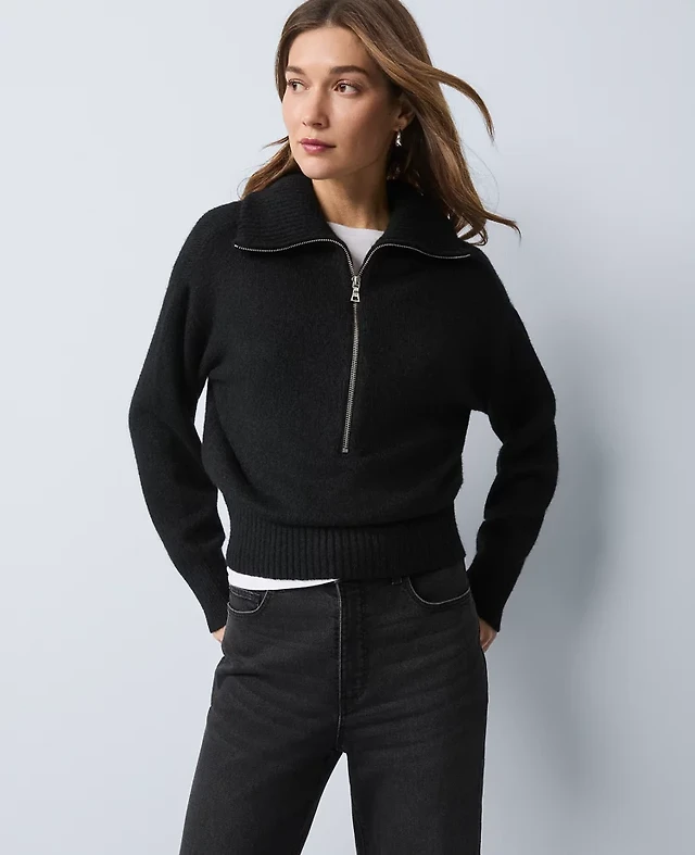 Ann Taylor Petite Weekend Collection Half-Zip Sherpa Pullover Winter White Women's