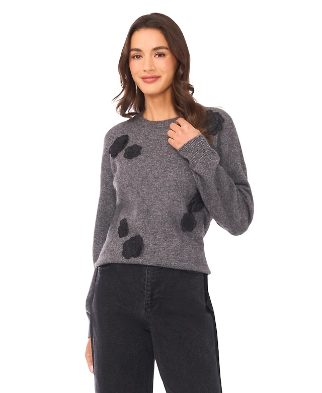 CeCe Women's Flower Applique Long Sleeves Sweater
