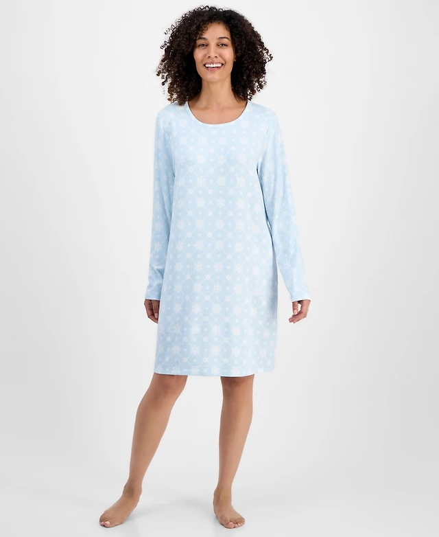 Charter Club Women's Long-Sleeve Embroidered Knit Nightgown