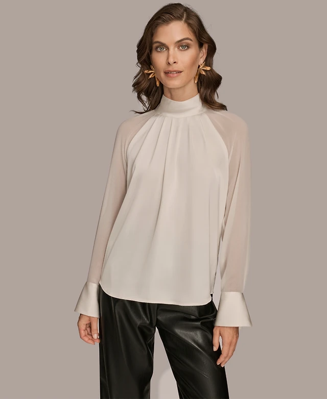 Donna Karan New York Women's High Neck Mix Media Blouse