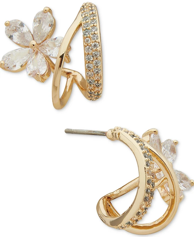 lonna & lilly Gold-Tone Crystal Flower Small Hoop Earrings, .58"