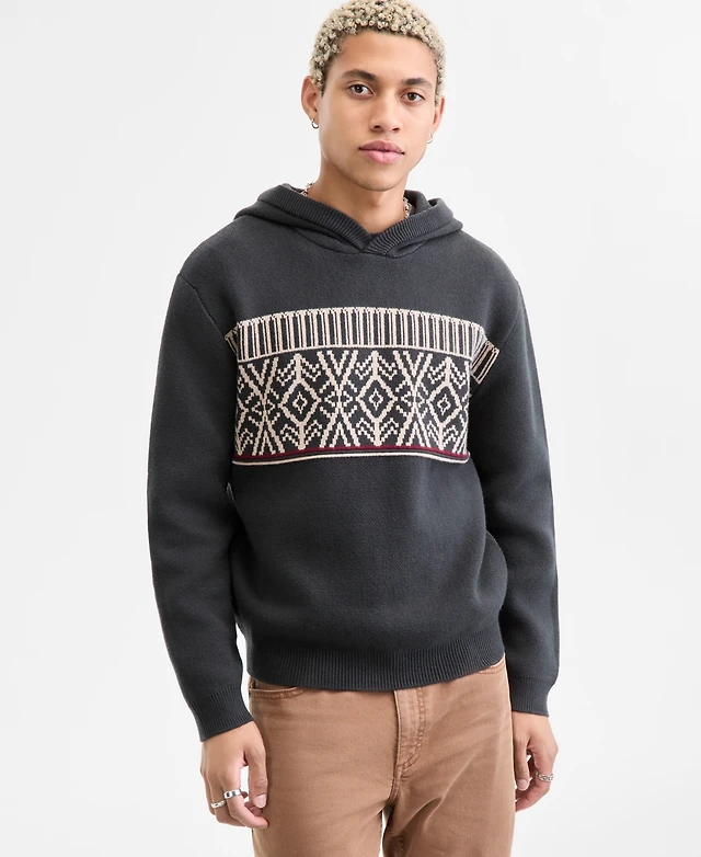Sun + Stone Men's Long-Sleeve Placed Fair Isle Hooded Sweater, Macy's Exclusive