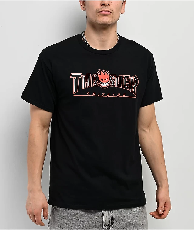 Thrasher x Spitfire Bighead Outline Black T-Shirt