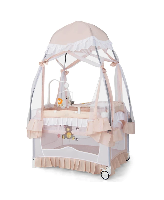 Costway Kids Portable Playard Nursery Center Crib with Hanging Toys & Music Box Unisex 0-3 Years