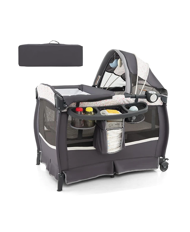 Gouun Kids 4 in 1 Portable Pack and Play Nursery Center with Bassinet-Heart