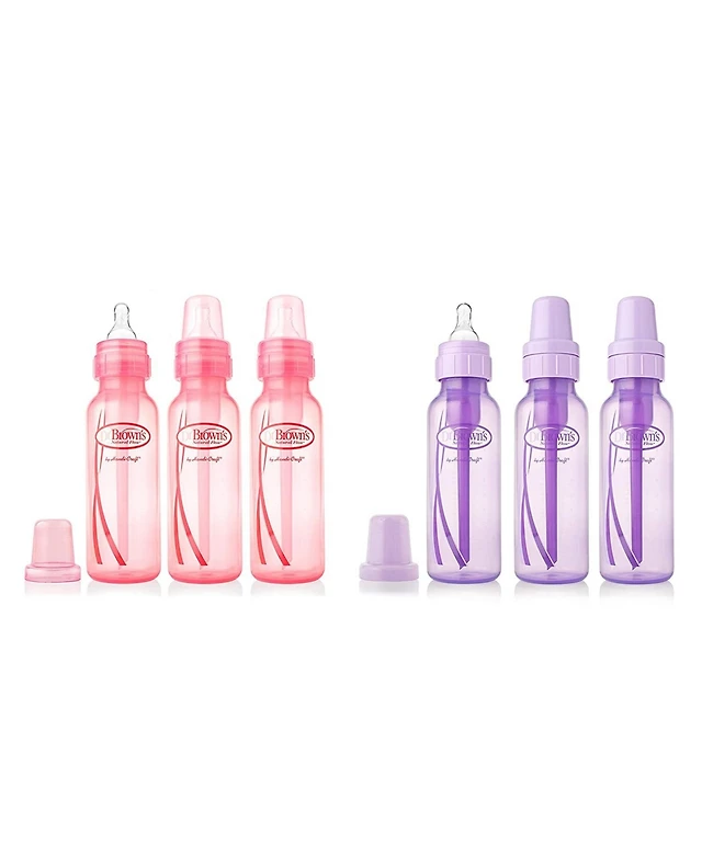 Dr. Browns Baby Natural Flow Anti-Colic Baby Bottles, Pink and Lavender, 8oz, 6 Pack